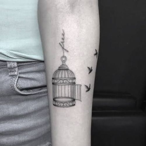 An open birdcage tattoo means freedom and letting go of things that are holding you back. It’s a powerful way to symbolize breaking free from limitations and living your life the way you want to.